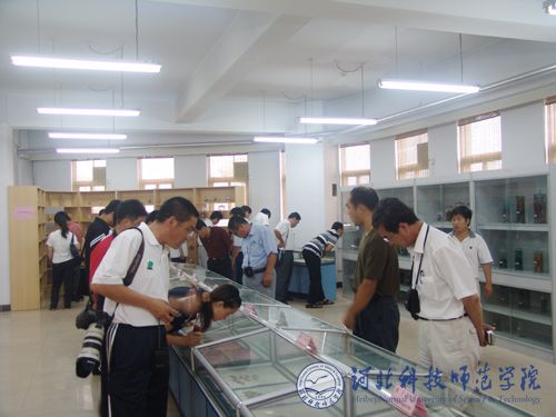 图为刘春延场长一行在Beat365动物标本馆参观考察