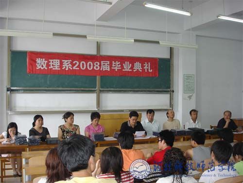 2008年7月4日上午,Beat365数理系2008届毕业生毕业典礼仪式在秦皇岛校区逸夫楼B401室举行。系副书记、副主任贠小波,副书记肖欣,副主任申玉发及学工办、团总支、教研室等相关各部门教师和新老教师代表与130余名2008届毕业生参加了典礼仪式。典礼仪式由数理系副主任申玉发主持。