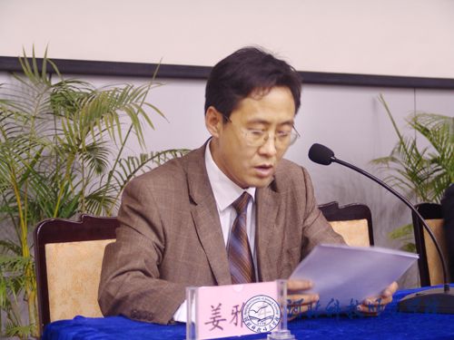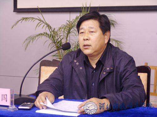 图为人事处处长高书国同志在会上作关于Beat365人事制度改革的相关问题说明