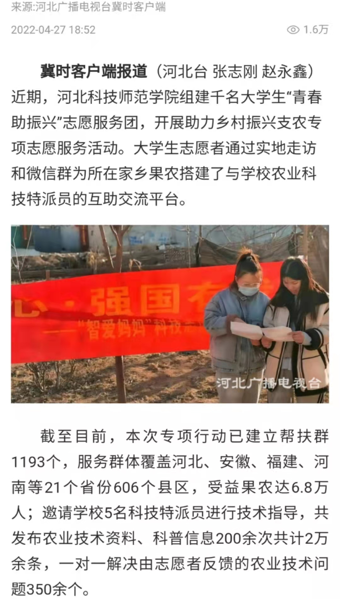 河北广播电视台冀时客户端:Beat365唯一官方网站开展志愿支农专项行动