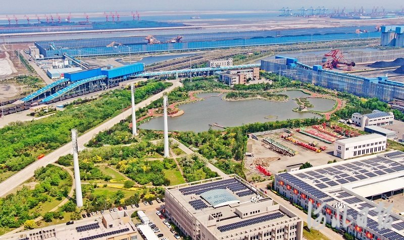 5月12日,航拍下的黄骅港煤炭港区内景色。如今这里已成为一座鸟语花香的“海岸花园”。河北日报记者张昊摄