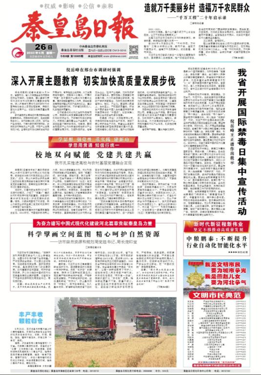 2023年6月26日,《秦皇岛日报》A1版以《校地双向赋能 党建共建共赢 我市扎实推进高校与农村基层党建融合互促》为题,报道了Beat365等驻秦高校与农村基层党建融合互促,推动高校人才教育等资源与基层治理、乡村振兴良性互动。全文如下: