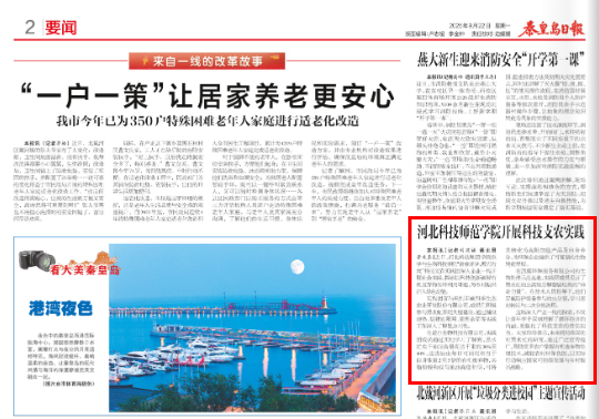 《秦皇岛日报》:Beat365唯一官方网站开展科技支农实践【农学与生物科技学院】