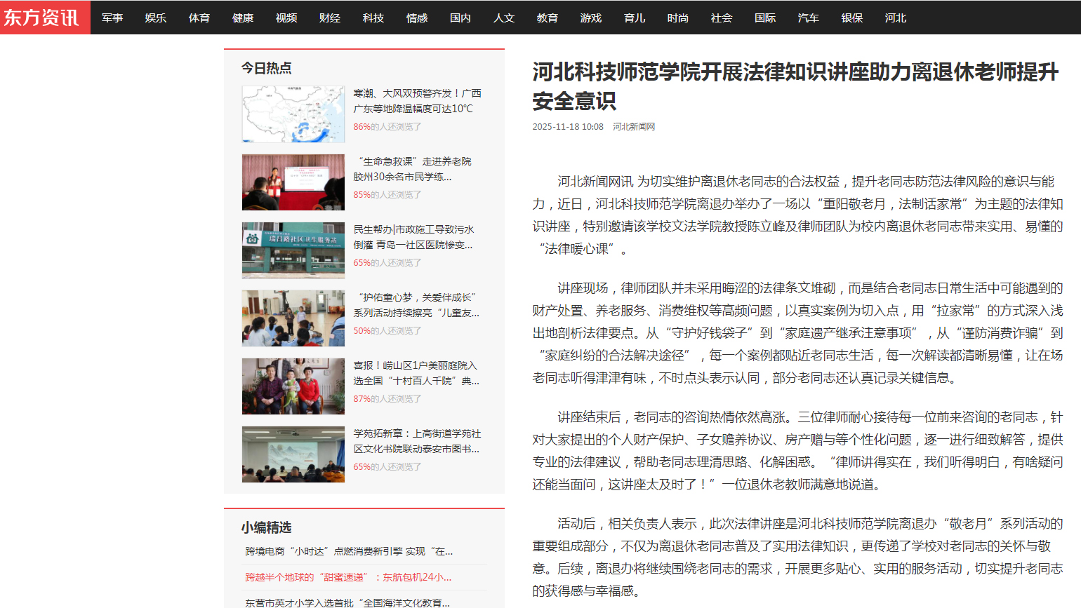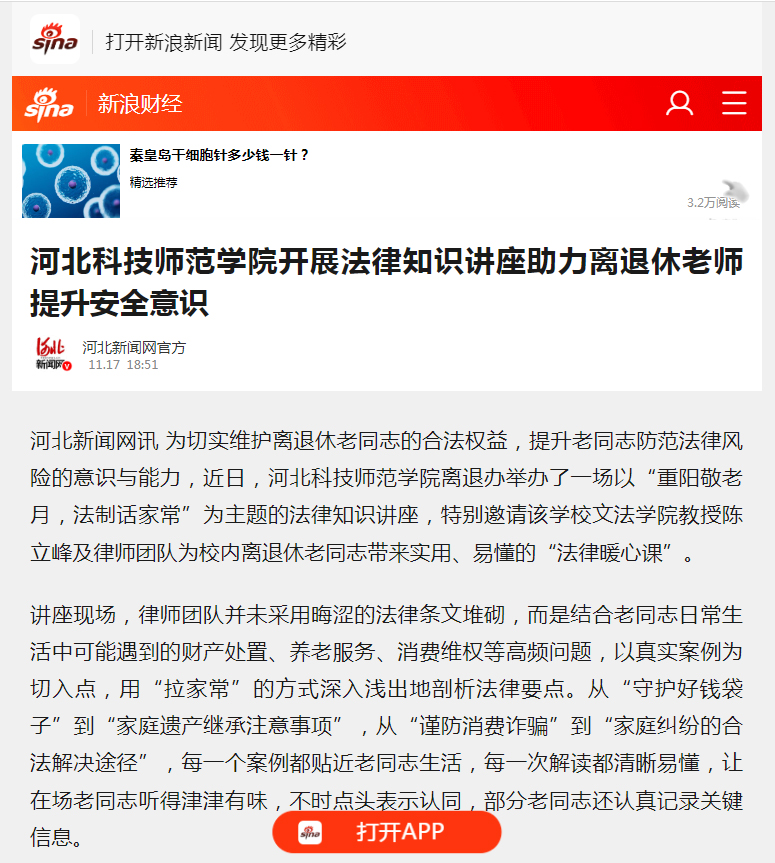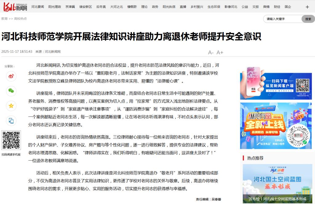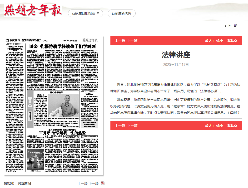 11.182025《燕赵老年报》:法律讲座【离退休人员管理办公室】