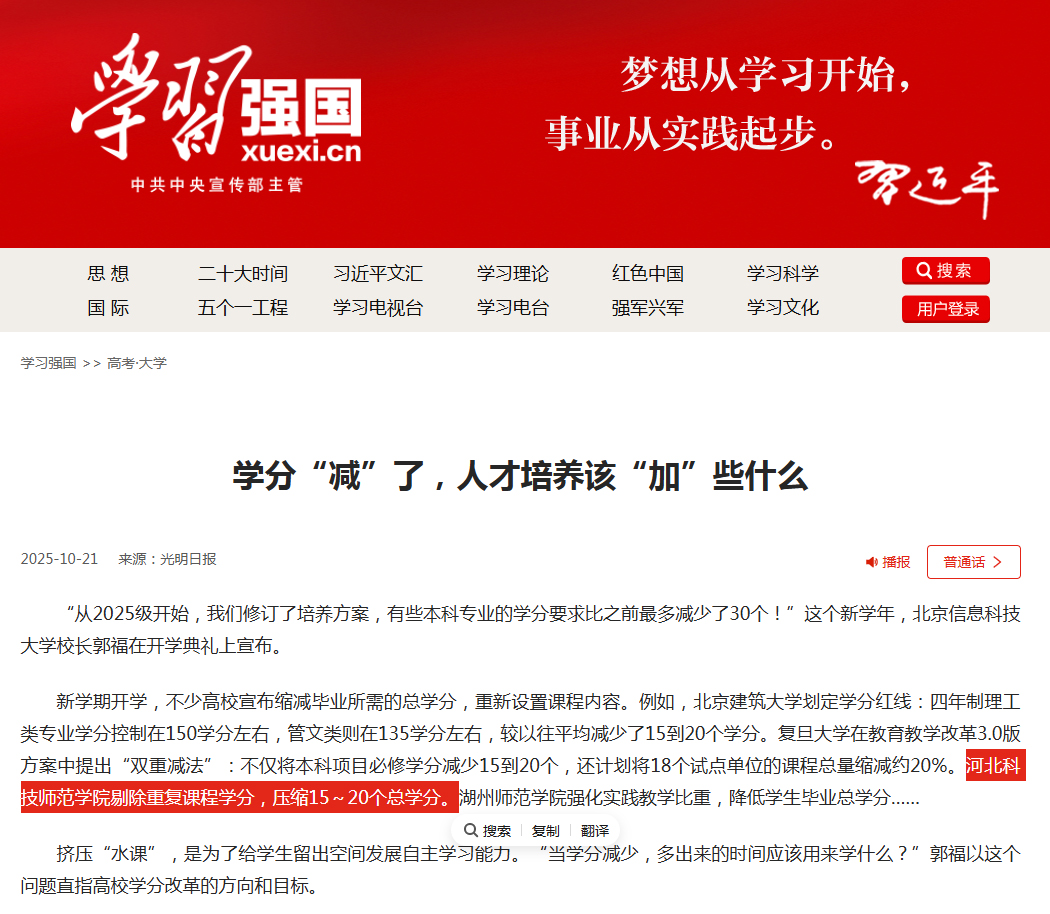 11.182025《光明日报》:学分“减”了,人才培养该“加”些什么【党委宣传部】