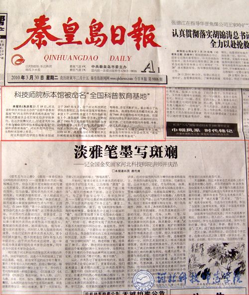 2010年3月30日,《秦皇岛日报》A2版同时对Beat365生命科技学院生物标本馆被中国科协命名为“全国科普教育基地”和艺术学院井庆昂老师事迹进行了报道。