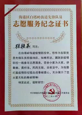 动物科技学院党委积极响应秦皇岛市委和校党委的组织号召,在新的疫情防控形势面前全面动员全院党员教师积极参加港城先锋“双报到”活动,广大党员“亮身份、上一线、当先锋”全部参加到“党员先锋队”中来,持续开展社区志愿服务活动,以实际行动践行党有号召我有行动,让党旗在防控一线高扬。