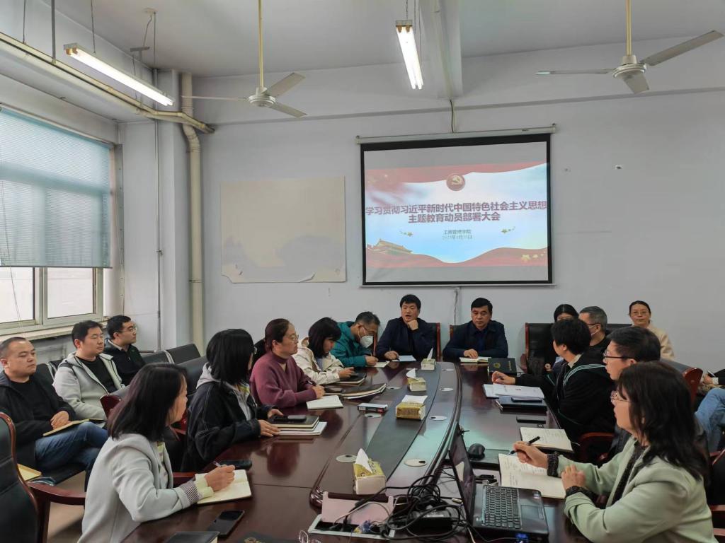 2023年4月25日下午,工商管理学院召开学习贯彻习近平新时代中国特色社会主义思想主题教育动员部署会,学院党政领导班子成员,全体党员老师参加会议。