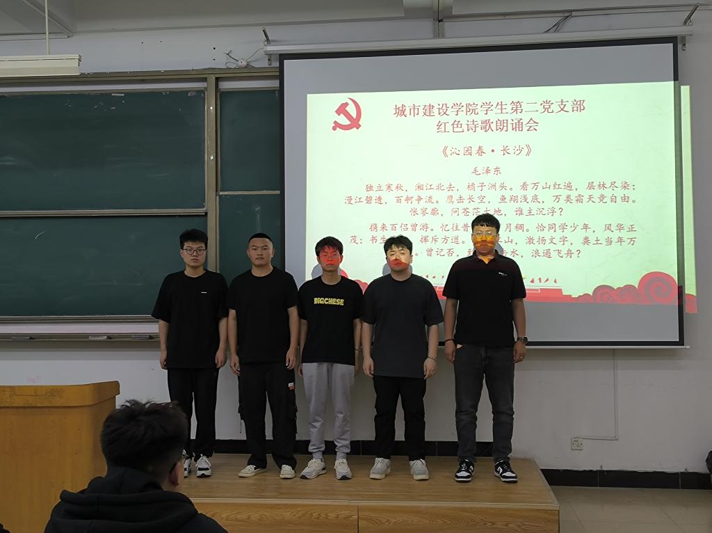 6月5日下午,为全面贯彻党的二十大精神,开展学习贯彻习近平新时代中国特色社会主义思想主题教育,城市建设学院学生第二党支部全体党员和积极分子举办学习贯彻习近平新时代中国特色社会主义思想主题教育红色诗歌朗诵会。