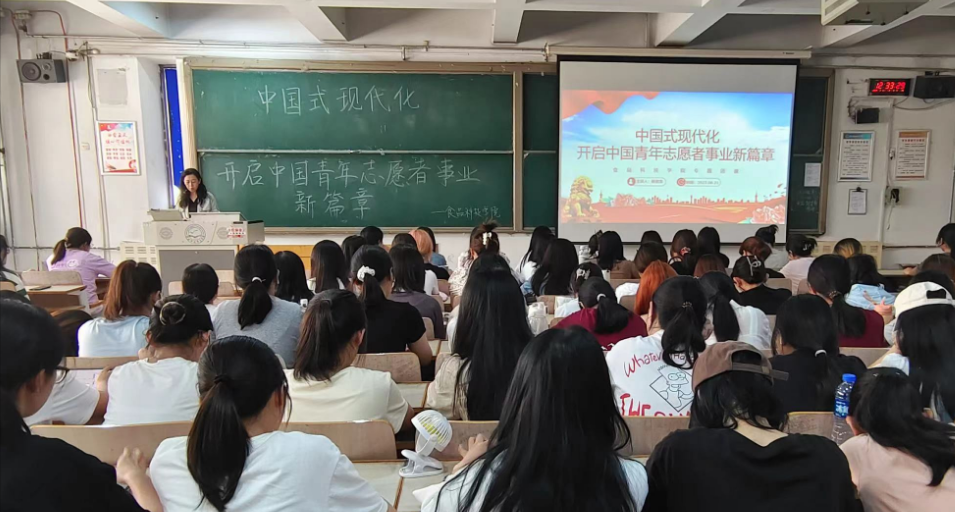 团课上,学院党委负责同志从“站在中国式现代化全局认识中国青年志愿者事业新方向”和“以中国式现代化战略安排引领中国青年志愿者事业新格局”两个方面为同学们做了详细的讲解。她强调,在新时代新征程上,学院青年学子要更加紧密地团结在以习近平同志为核心的党中央周围,以习近平新时代中国特色社会主义思想为指导,进一步增强作为志愿者的历史感、光荣感、责任感,做怀抱梦想、脚踏实地、敢想敢为、善作善成的新时代青年,在中国式现代化进程中贡献青春力量,奋力续写青年志愿者事业的精彩华章。