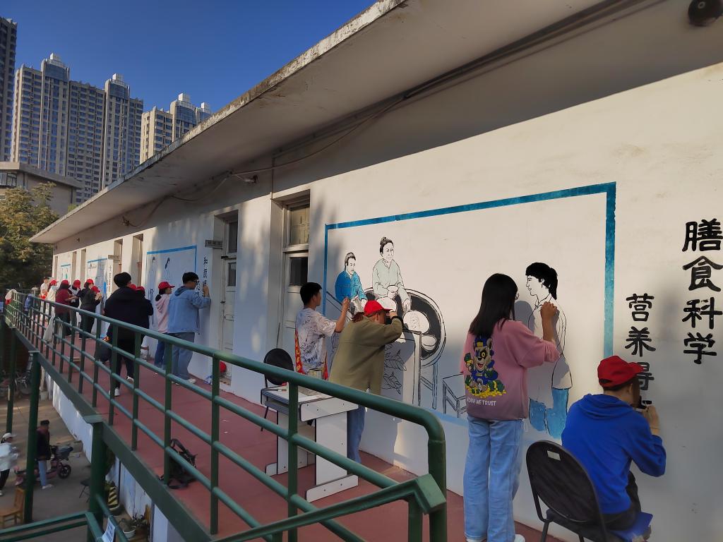 城建学院城乡规划专业的同学们学以致用,将所学的专业理论知识与实践相结合,小小的画笔在同学们手中翻转,流畅的线条跃然于墙上。一幅幅爱老敬老的手绘外墙画,是同学们为老人们送去的爱心和温暖。