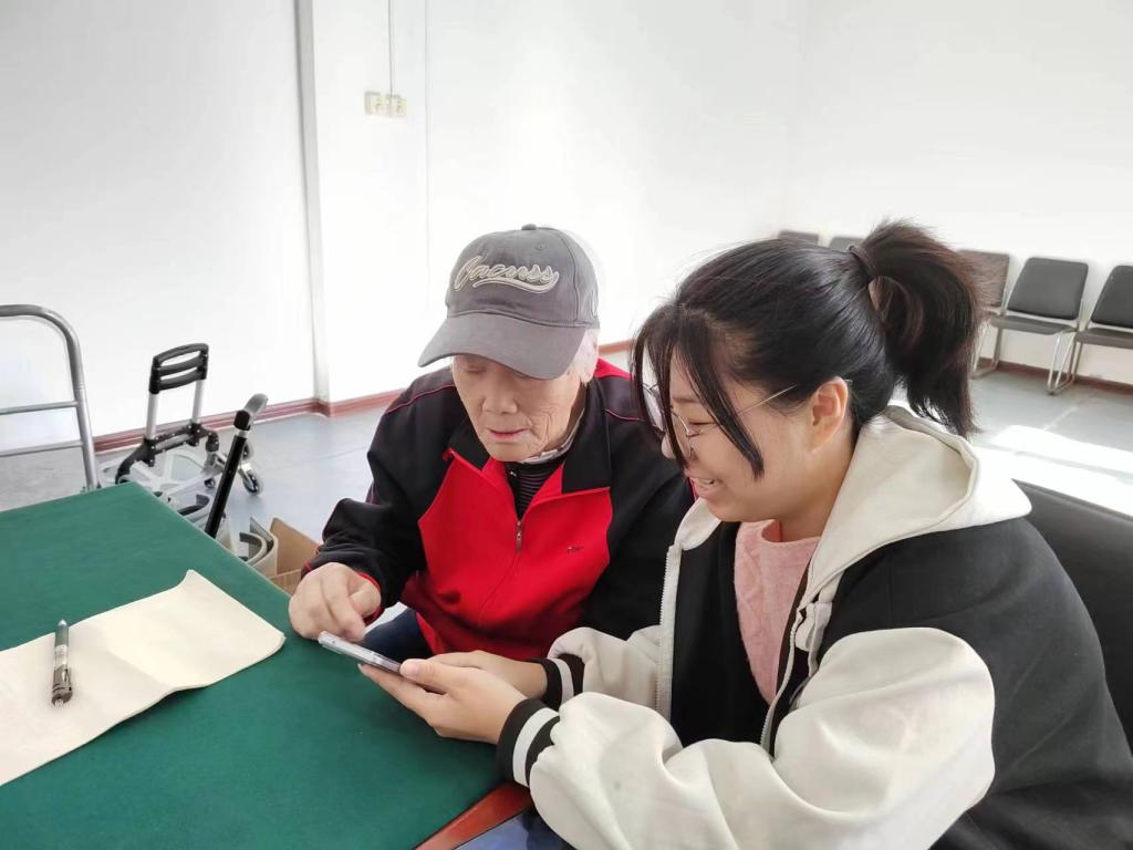 曾经,是学生们端坐在黑板前,看着讲台上的老师传播知识。此刻,是退休老师们戴着老花镜,虚心向学生们请教。物理科学与技术学院的志愿者同学们化身“小老师”,答疑解惑;老教师们谦虚好学,边听边记,生怕错过一个细节。授课内容丰富多彩,包括社交、出行、购物等常用软件的使用,以及如何在网上预约体检和查询体检报告等操作。