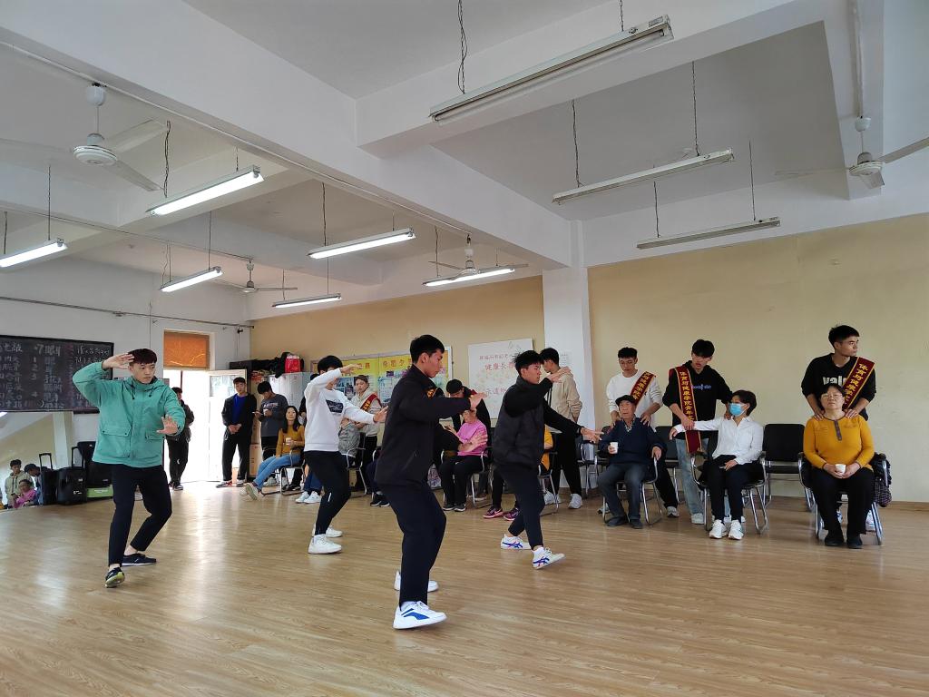 为进一步弘扬中华民族孝亲敬老的传统美德,营造敬老爱老助老的浓厚氛围,体育与健康学院运动康复专业的同学们运用平时所学专业技能给老同志们进行了穴位按摩,并展示了“八十八式太极拳”和“三十二式太极剑”。老教师们与同学们亲切交流,并与他们一起切磋“武艺”。