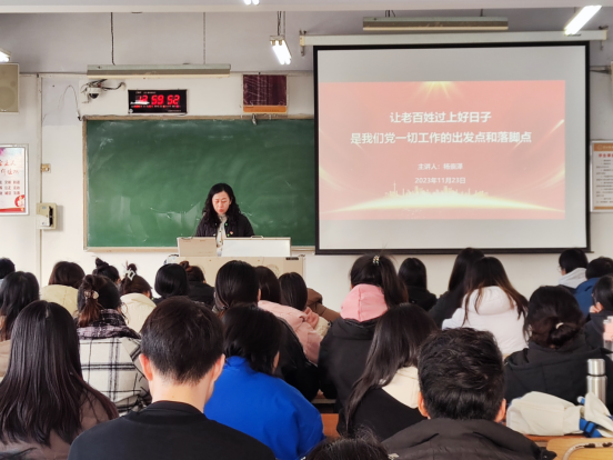 学院党委负责同志为全体学员讲授了题为“让老百姓过上好日子是我们党一切工作的出发点和落脚点”的专题党课,她系统讲述了党的十八大以来,以习近平同志为核心的党中央坚持以人民为中心的发展思想,在保障和改善民生、朝着共同富裕目标持续迈进方面取得重大历史性成就。她强调,为中国人民谋幸福,是中国共产党人的初心,作为新时代青年,要保持热爱人民的深厚情感,要锤炼服务人民的过硬本领,牢记党的教诲,立志民族复兴,不负韶华,不负时代,不负人民。(编辑:孙艳敏 审核:彭妍)