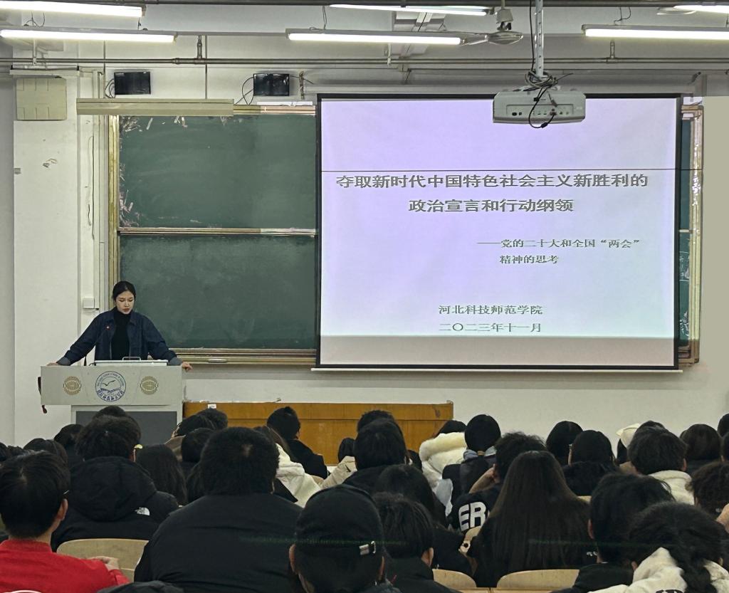 团课邀请马克思主义学院黄珊老师作题为“夺取新时代中国特色社会主义新胜利的政治宣言和行动纲领——即党的二十大和全国‘两会’精神的思考”主题团课。黄珊老师讲述了党的二十大报告的起草过程、框架结构和精神实质,教育引导青年学生要坚定不移听党话、跟党走,积极投身于建设社会主义现代化国家的伟大实践中。