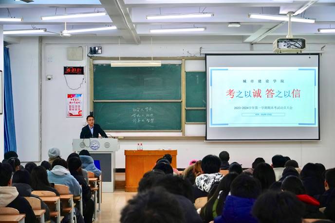 为加强“三风”建设,引领和营造公平诚信的考试氛围,1月8日,城市建设学院举行了“考之以诚,答之以信”考风考纪大会。学院领导、全体辅导员、学生党员和学生干部共129人参加了会议。