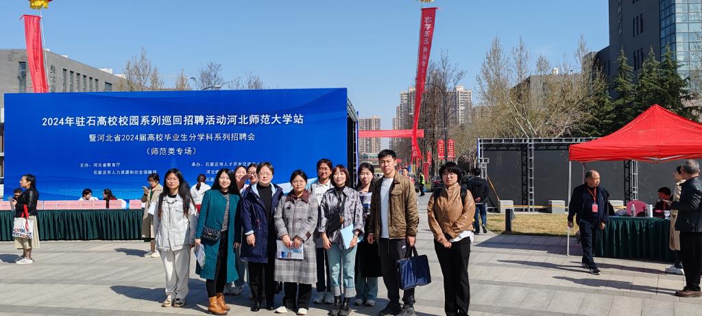 2024年3月31日,教育学院主管学生工作负责同志带领学院学工办主任、应用心理学教学部副主任、专职辅导员赶赴河北师范大学参加师范类专场招聘会,积极推荐学院2024届毕业生。