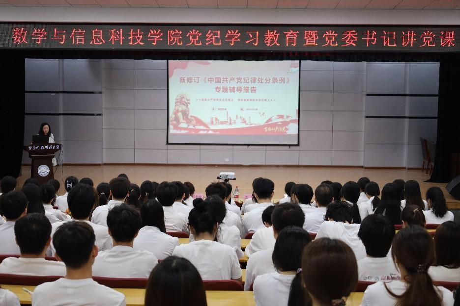 2024年7月1日,数学与信息科技学院“七一”新党员宣誓仪式暨党纪学习教育专题党课在秦皇岛校区多功能厅举行。学院党委书记、副书记、各学生党支部书记和全体学生党员参加活动。