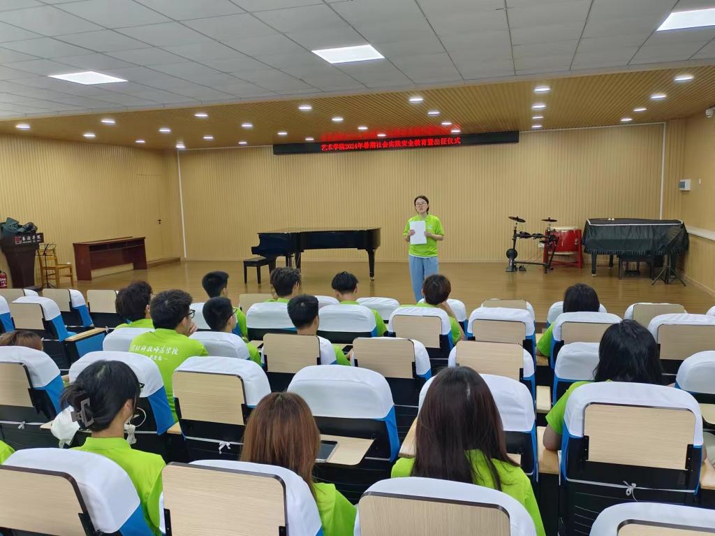 2024年7月8日,艺术学院在艺术楼众诚报告厅举办了2024年暑期社会实践安全教育培训暨出征仪式,学院团委负责同志、“如漆而至”、“艺心艺意”暑期实践团全体成员和指导教师参加了活动。