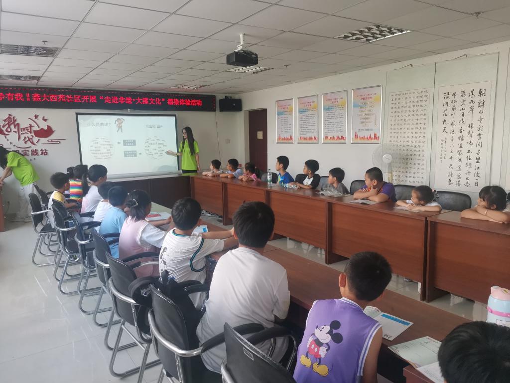 “大漆”文化是中国传统文化中的一颗璀璨明珠,拥有着悠久的历史和深厚的底蕴。小朋友们带着好奇与期待,聚精会神地聆听着实践队员的讲解。首先,队员带领小朋友们了解了中华传统非遗文化的丰富内涵,学习了“大漆文化”这一独特的文化瑰宝。生动有趣的大漆故事,仿佛为小朋友们打开了一扇通往古老文化的神秘之门。紧接着,精彩的艺术欣赏环节让小朋友们充分领略到大漆艺术的魅力,除了观看精美的图片,实践队员还为小朋友们现场展示了几件大漆工艺品,让小朋友们零距离接触和感受。