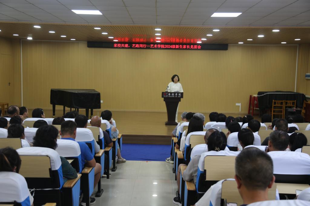 2024年9月3日,艺术学院在众诚报告厅召开“家校共建艺路同行”2024级新生家长见面会。学院主管学生工作负责同志主持,全体辅导员、新生班主任和140多位家长出席会议。