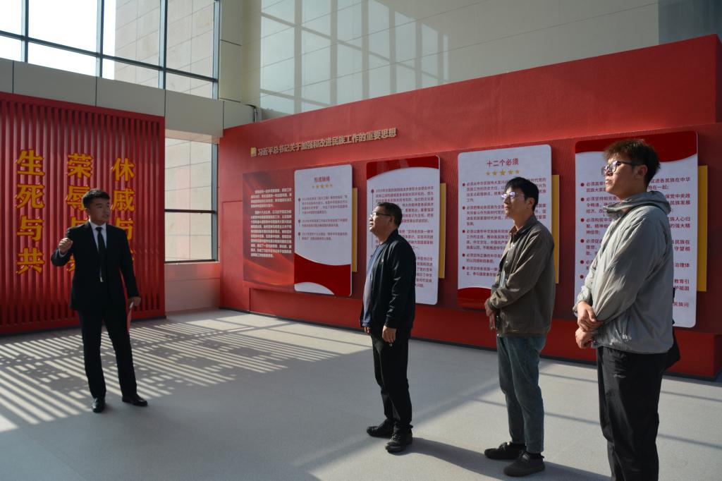 交流会后,在内蒙古财经大学马克思主义学院党委副书记任海霞及教务科等工作人员陪同下,先后参观了内蒙古财经大学铸牢中华民族共同体意识实践教育基地、思政课共享型虚拟现实实践教学基地。
