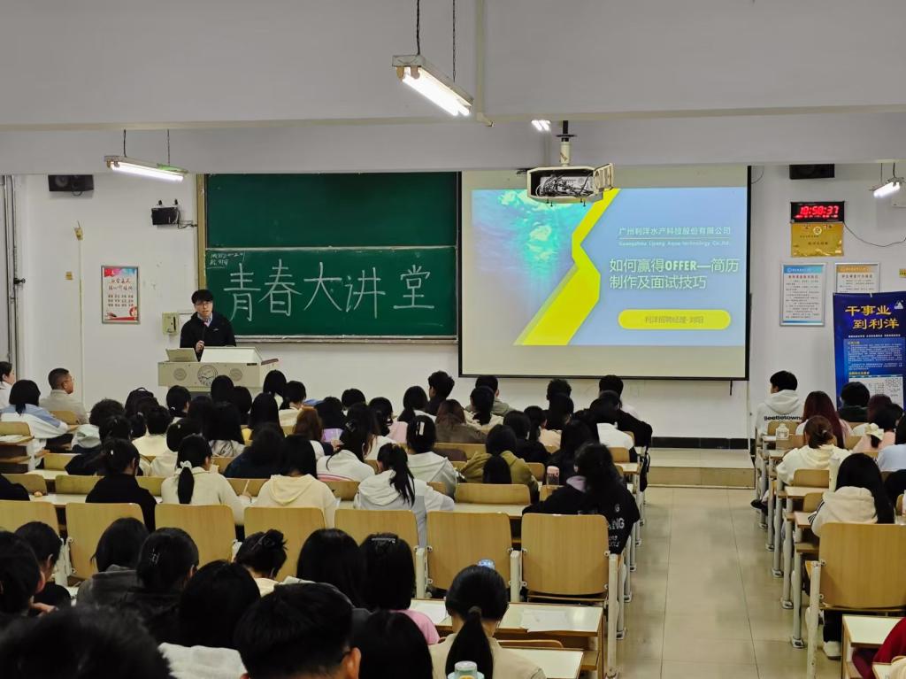 2024年10月17日,为提升学生就业能力,切实促进学生高质量就业,海洋资源与环境学院邀请广州利洋水产科技股份有限公司人力资源部刘阳经理给毕业生带来了一场生动的简历制作与面试技巧培训。