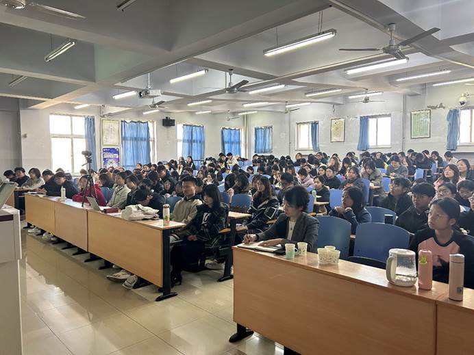 2024 年 10 月 23 日,为了让同学们充分了解就业形势,合理规划职业发展路径,外国语学院邀请教育学院张晓军书记作《25届高校毕业生就业形势与对策分析》专题宣讲会。讲座由外国语学院党委负责人主持,2021 级及 2022 级全体在校生 300 余人聆听了讲座。