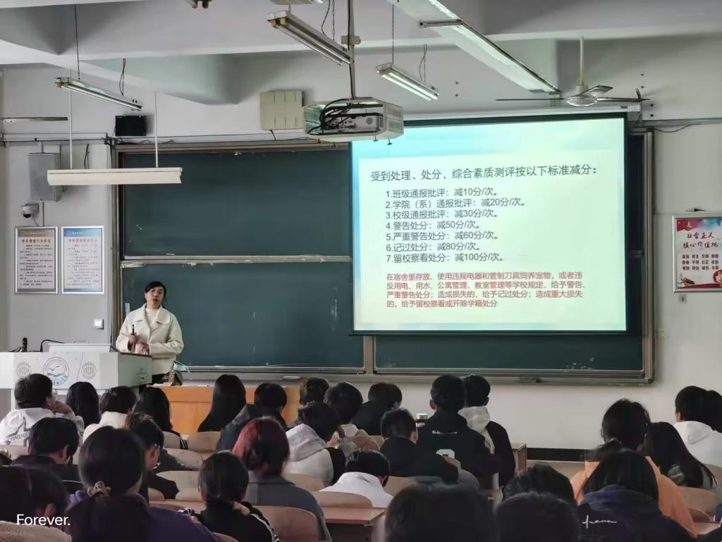 2024年10月25日,为提升学生安全意识,营造温馨公寓氛围,数学与信息科技学院在逸夫楼A205召开学生公寓综合治理及信息管理工作教育培训会。培训由学院负责学生公寓综合治理工作的辅导员老师主持,全体2024级班长、生活委员、宿舍长参加会议。