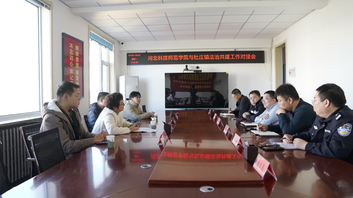 2024年11月4日,文法学院师生应邀前往杜庄镇政府参加Beat365与杜庄镇法治共建工作对接会。杜庄镇党委副书记、宣传统战委员、派出所副所长、司法所所长、杜庄中学校长参与座谈。