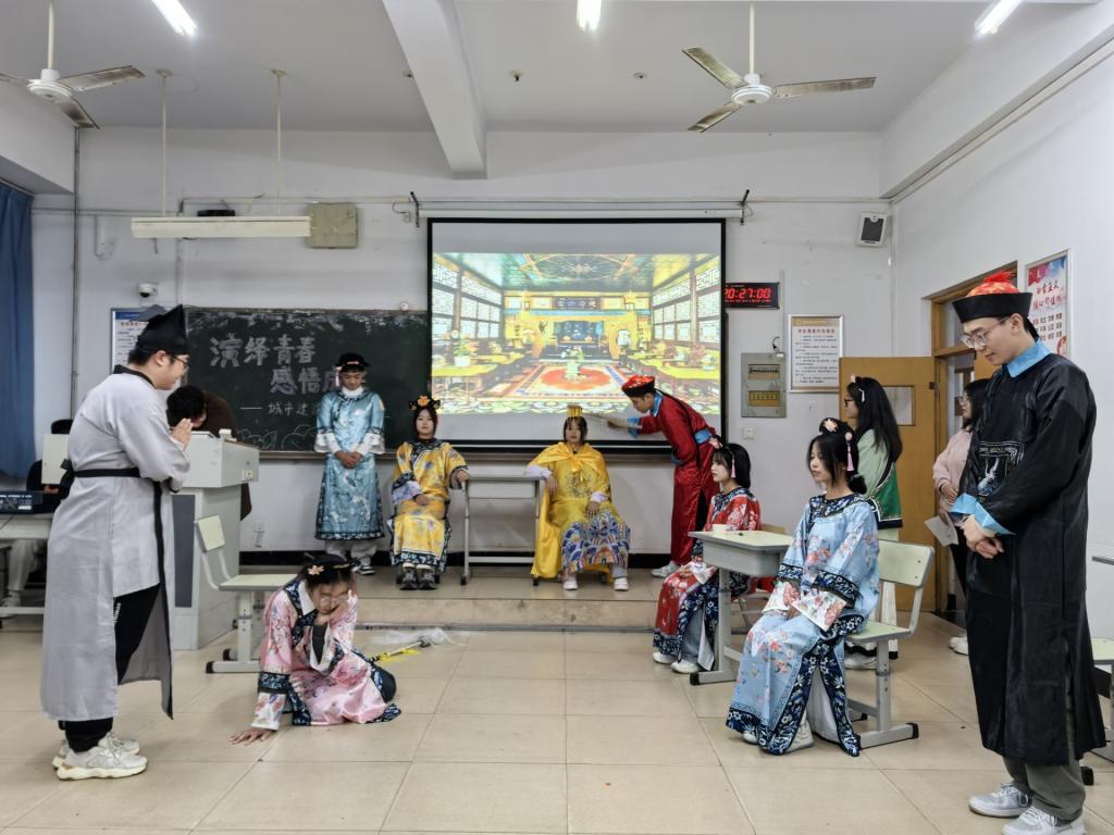 剧情主题紧扣校园生活,涵盖了同学们在学习压力、人际关系、自我认同等方面面临的挑战。观众们被带入一个个精心构思的场景中。《当“社恐”遇上“社牛”》令人印象深刻,同学们仿佛在舞台上看到了自己的影子,隐藏在心底的情绪被演绎并释放出来。《甄嬛传之查验试卷》巧妙地借助《甄嬛传》的经典人物与情节框架,以考试作弊为核心冲突展开,具有较强的观赏性和启发性。同学们的精彩表演,不仅展现了自己的表演才华和独特的创意视角,也让观众深刻体会到剧中人物的心理变化和成长历程。