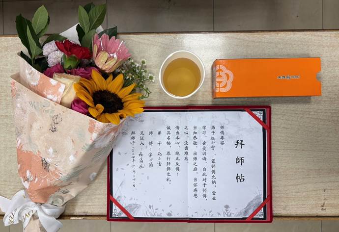 随后,结对师徒进行了正式拜师仪式。弟子们向师傅敬茶、鞠躬、献花,表达对师父的尊敬和感激之情,并呈上拜师帖,正式确立了师徒关系。师父们则向弟子们回赠了钢笔,寓意着书写人生、传承智慧。师父代表牛少莉和弟子代表刘畅分别发表了感言,表示将珍惜这次师徒结缘的机会,相互学习、共同进步,为学院的教学事业贡献自己的力量。