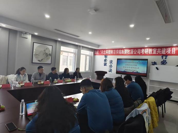 2025年3月8日,动物科技学院领导、专职辅导员一行6人前往唐山清牧源科技有限公司走访交流,并正式签订校企合作协议。此次合作旨在整合双方资源,推动产学研深度融合,共同培养适应现代动物科技行业需求的高素质人才。