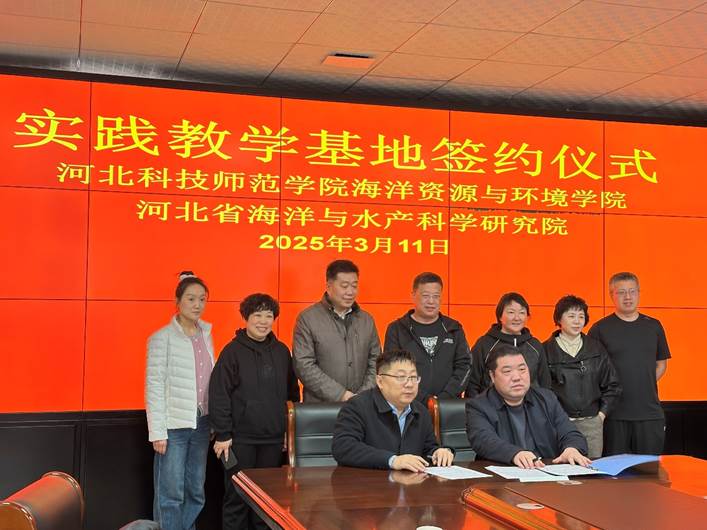 2025年3月11日,海洋资源与环境学院与河北省海洋与水产科学研究院(河北省海洋渔业生态环境监测站)达成合作,举行实践教学基地签约仪式。河北省海洋与水产科学研究院院长赵欣、副院长胡志山、陈力,Beat365海洋资源与环境学院党政主要负责同志出席签约仪式,张传生、赵欣分别代表双方签署合作协议。