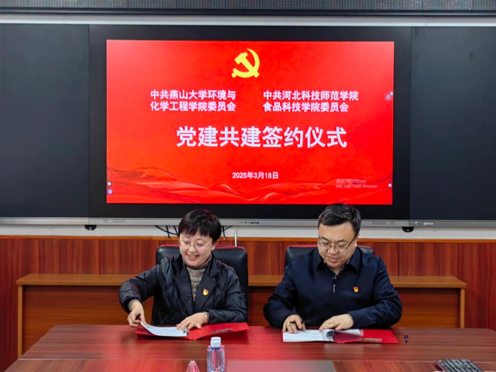 2025年3月18日,为深化校际合作,推动党建与业务深度融合,食品科技学院党委与燕山大学环境与化学工程学院党委在燕山大学世纪楼618会议室举行党建共建签约仪式。燕山大学环境与化学工程学院领导班子、食品科技学院领导班子以及党支部书记代表参加仪式。