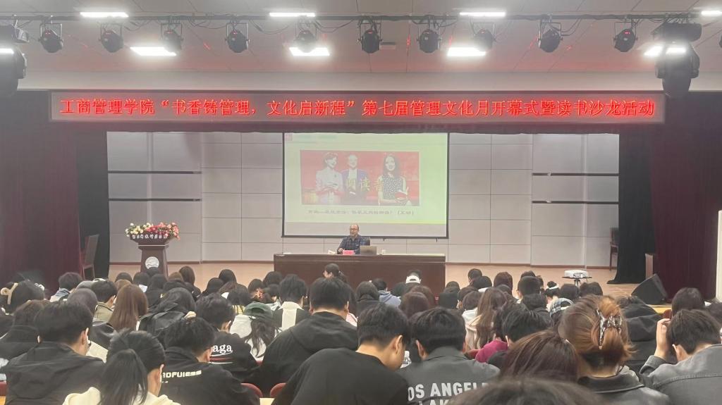 近日,工商管理学院“书香铸管理,文化启新程”第七届管理文化月开幕式暨读书沙龙活动在多功能厅举行。学院党政领导、辅导员班主任及240余名学生参加了活动。