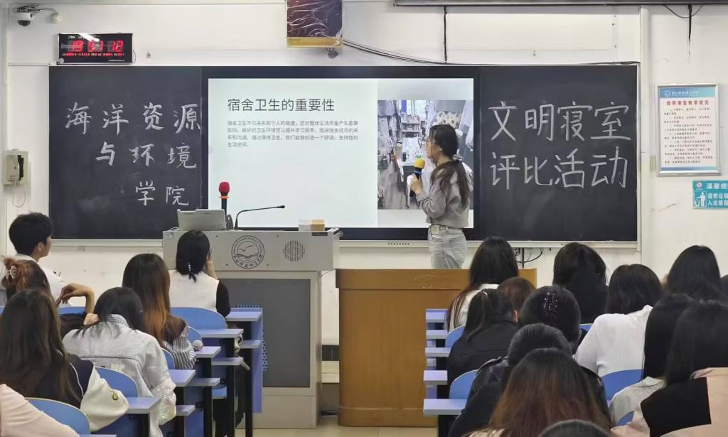文明寝室评比:以美育德树新风。学院“文明寝室创建大赛”历经两周紧张而激烈的角逐后顺利收官。此次大赛中,参赛寝室纷纷以“温馨・创意・和谐”为主题,通过绿植造景、文化墙设计、收纳巧思等细节,巧妙展现出独特的生活美学。其中,芳南414寝室凭借“海洋生态主题布景”的巧妙构思和精美呈现,从众多参赛寝室中脱颖而出,斩获一等奖。