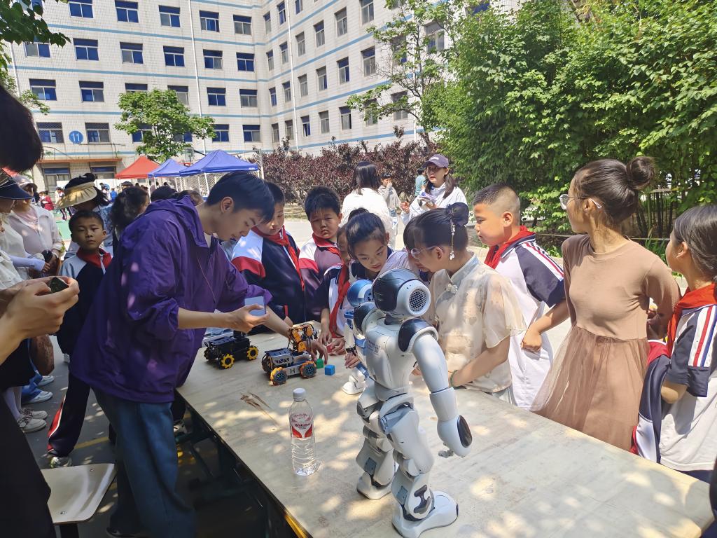 2025年六一儿童节前夕,数学与信息科技学院人工智能教学部师生应海阳小学之邀,携智能分拣小车和机器人参加科创展,为小学生上了一堂人工智能的启蒙课。团队以专业科技展演与趣味互动体验,为孩子们打造了一场沉浸式科技启蒙之旅,让前沿科技在童真世界里绽放别样光彩。