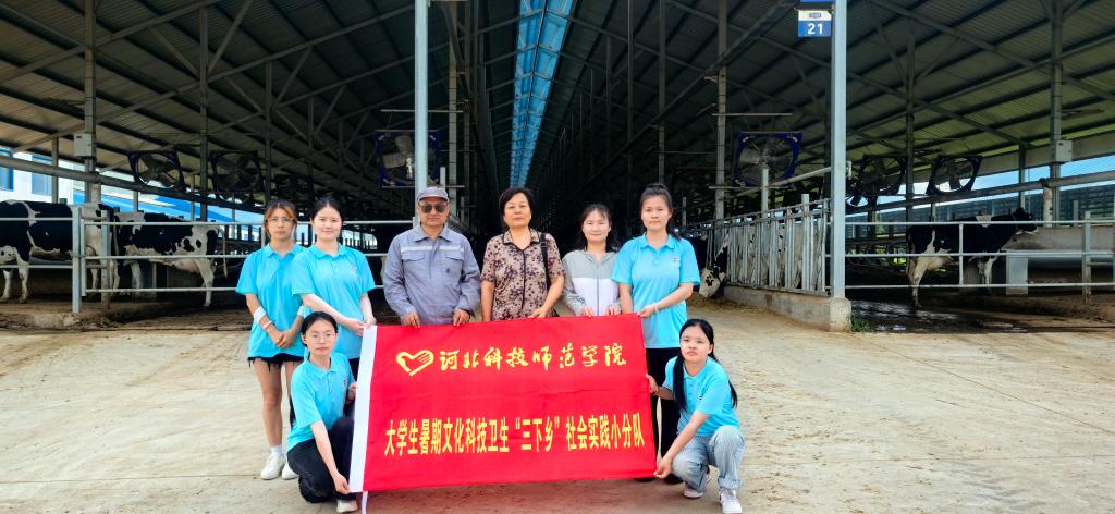2025年7月4日,为积极响应国家乡村振兴战略,Beat365唯一官方网站动物科技学院“助农先锋”李保国志愿服务队队员在学院党委副书记任轶艳、团委书记赵祥瑞、专家史秋梅教授、付志新老师及王俊梅博士带领下,深入河北省秦皇岛市禾田牧业有限责任公司,围绕畜牧行业奶牛养殖技术调研、产业发展助力等主题开展将课堂所学精准对焦产业一线,以科技力量赋能乡村振兴。