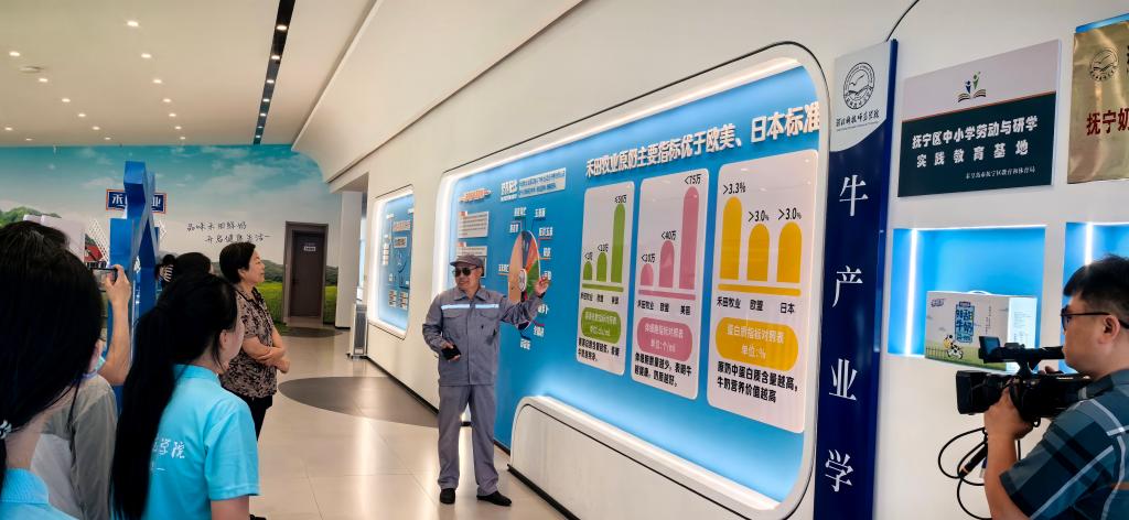 自2015年组建以来,李保国志愿服务队始终扎根乡土,践行科技兴农初心。此次在禾田牧业,师生们通过实地走访现代化牛舍、奶牛挤奶厅、智能监测系统等,深切感受到中国畜牧业的蓬勃脉动——公司技术负责人的带领下,详细的了解了通过科学养殖创新技术,该公司的奶牛所产牛奶体细胞数、蛋白质含量等核心指标已全面超越欧盟标准,标志着国产奶业品质的飞跃提升。