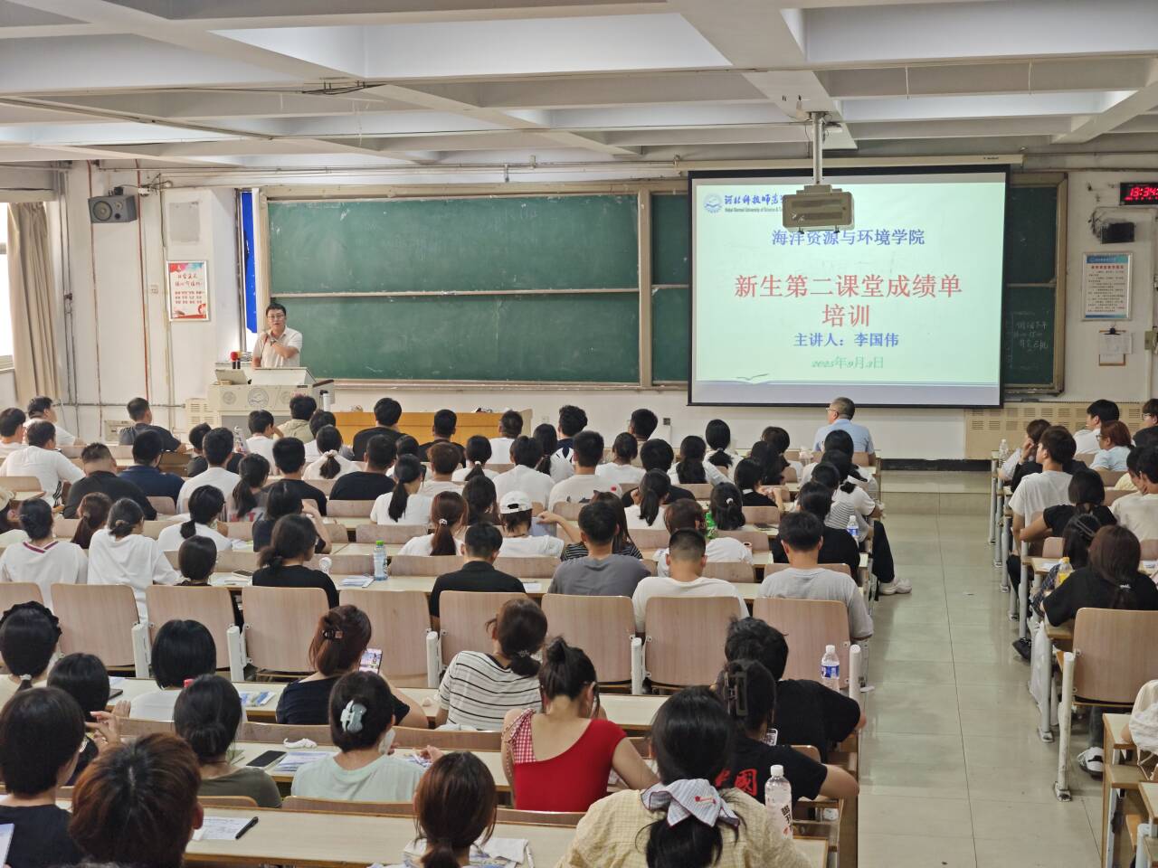 近日,为帮助 2025 级新生快速适应大学育人体系,明确第二课堂作用,海洋资源与环境学院举办第二课堂成绩单制度专题培训。学院学生工作人员参加,全体新生参与。