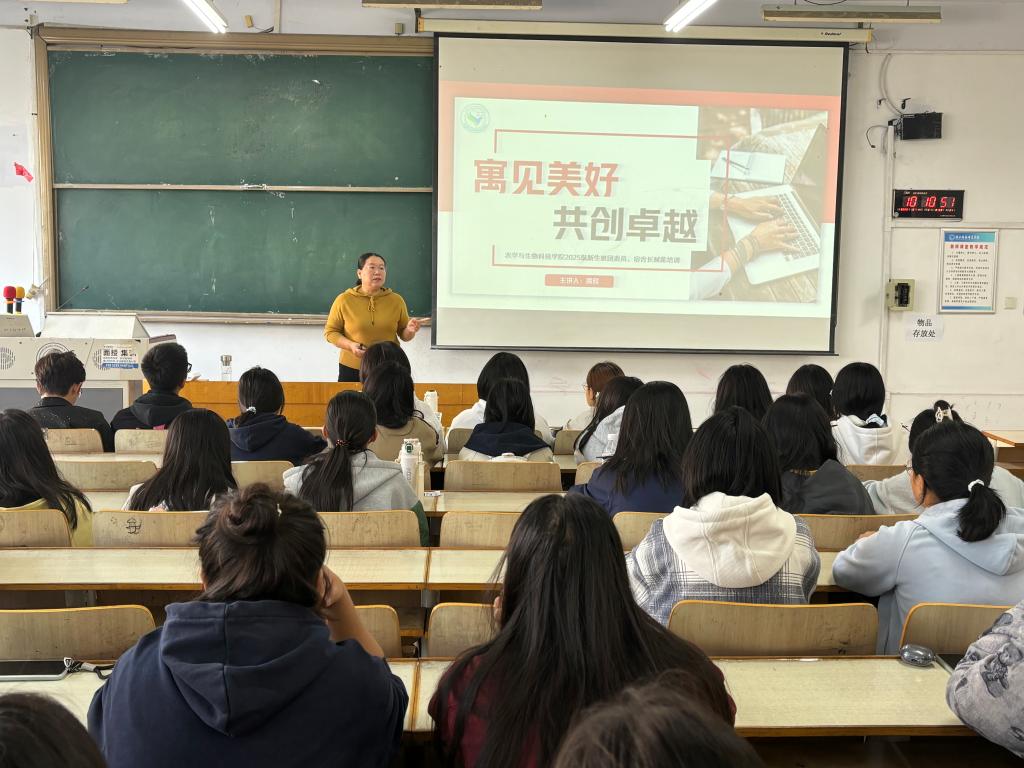 2025年10月14日,为全面提升新生班团干部与宿舍长的责任意识与履职能力,农学与生物科技学院以“寓见美好,共创卓越”为主题,举办新生班团干部、宿舍长等骨干学生干部赋能培训讲座,本次讲座由学院主管学生工作领导担任主讲。