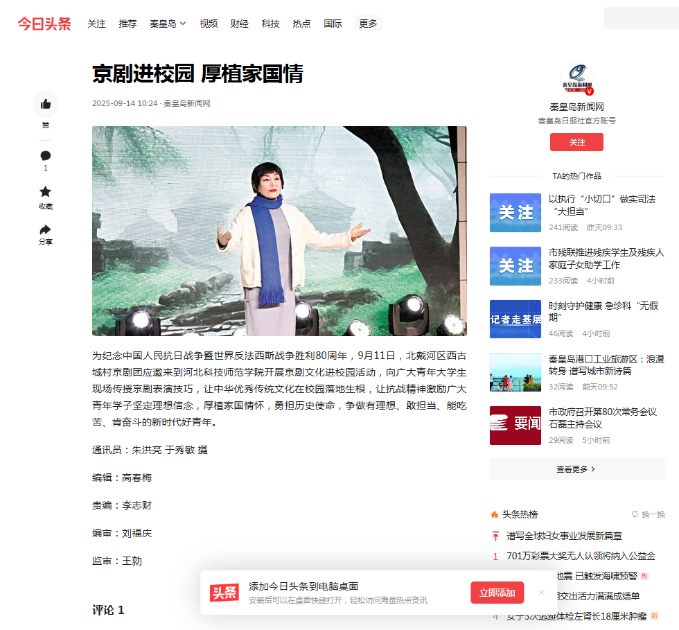 2025年9月14日的今日头条新闻网、澎湃新闻网、《秦皇岛日报》、秦皇岛新闻网等媒体对活动进行了广泛宣传报道。